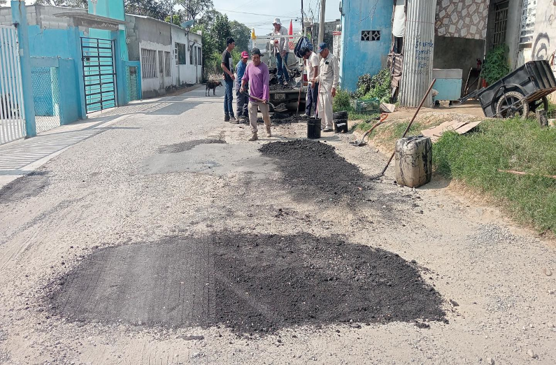 Labores de bacheo en el Ejido Siglo XXI