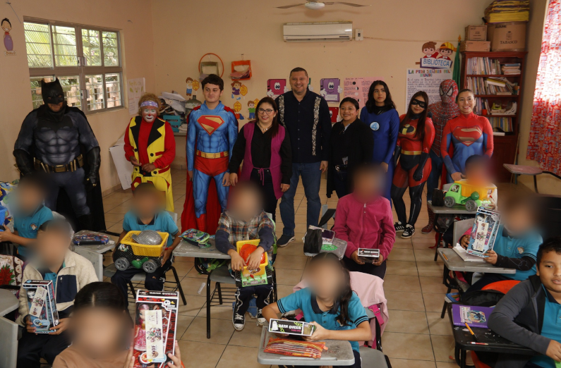 En la gira de entrega de juguetes con motivo de la celebración del Día de los Reyes Magos, el presidente municipal, Lic. Gaspar Díaz Falcón, realizó una visita a la Escuela Primaria Rural Héroe de Nacozari, ubicada en la R/a Santuario 1.ª sección.